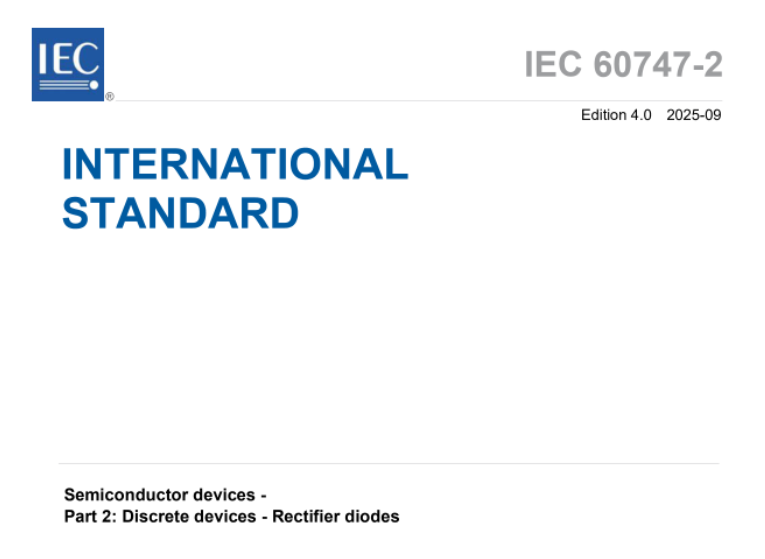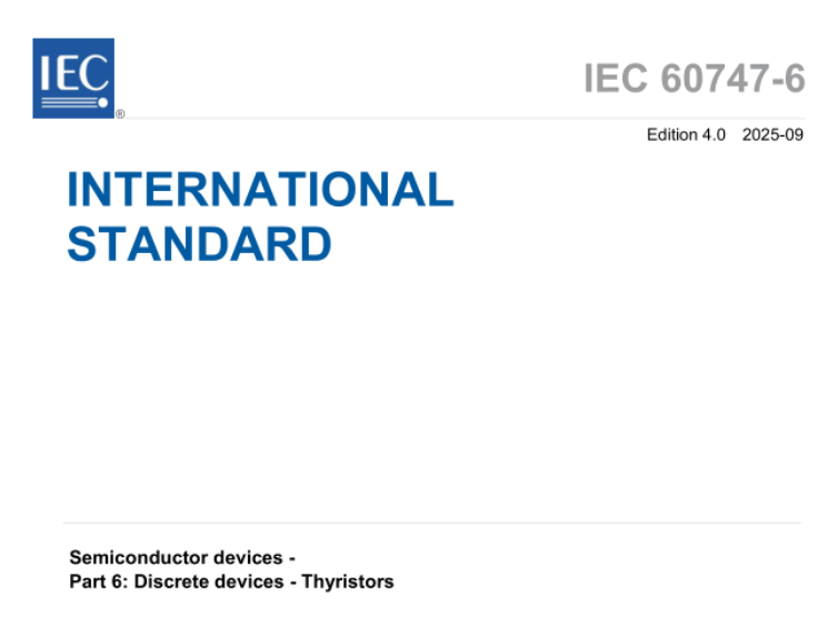 2025年9月底,西安电力电子技术研究所有限公司牵头修订的两项国际标准IEC 60747-2:2025《半导体器件 第2部分:分立器件 整流二极管》和IEC 60747-6:2025《半导体器件 第6部分:分立器件 晶闸管》正式发布。这是我国首次牵头制修订IEC功率半导体器件标准,标志着我国功率半导体器件国际标准化工作取得“零”的突破,为功率半导体器件国际标准化工作提供了完整的“中国方案”,做出了“中国贡献”。