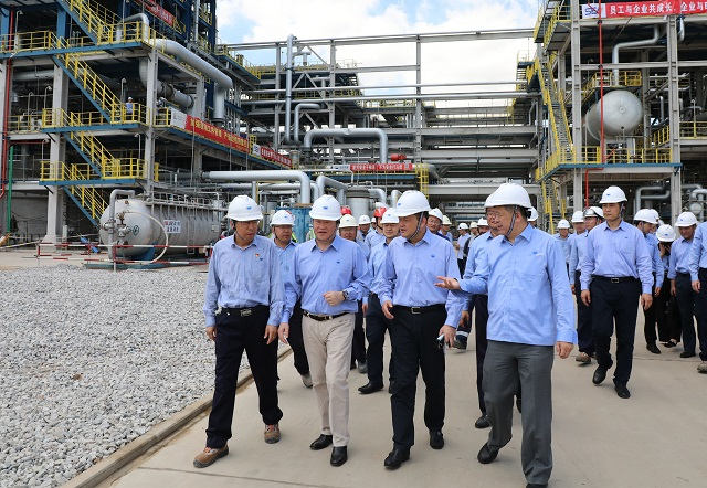 随后,宁总来到乙烯装置区视察生产准备情况,与芳烃装置外籍专家现场交流,并前往立体库了解产品包装自动化生产线的运转情况。